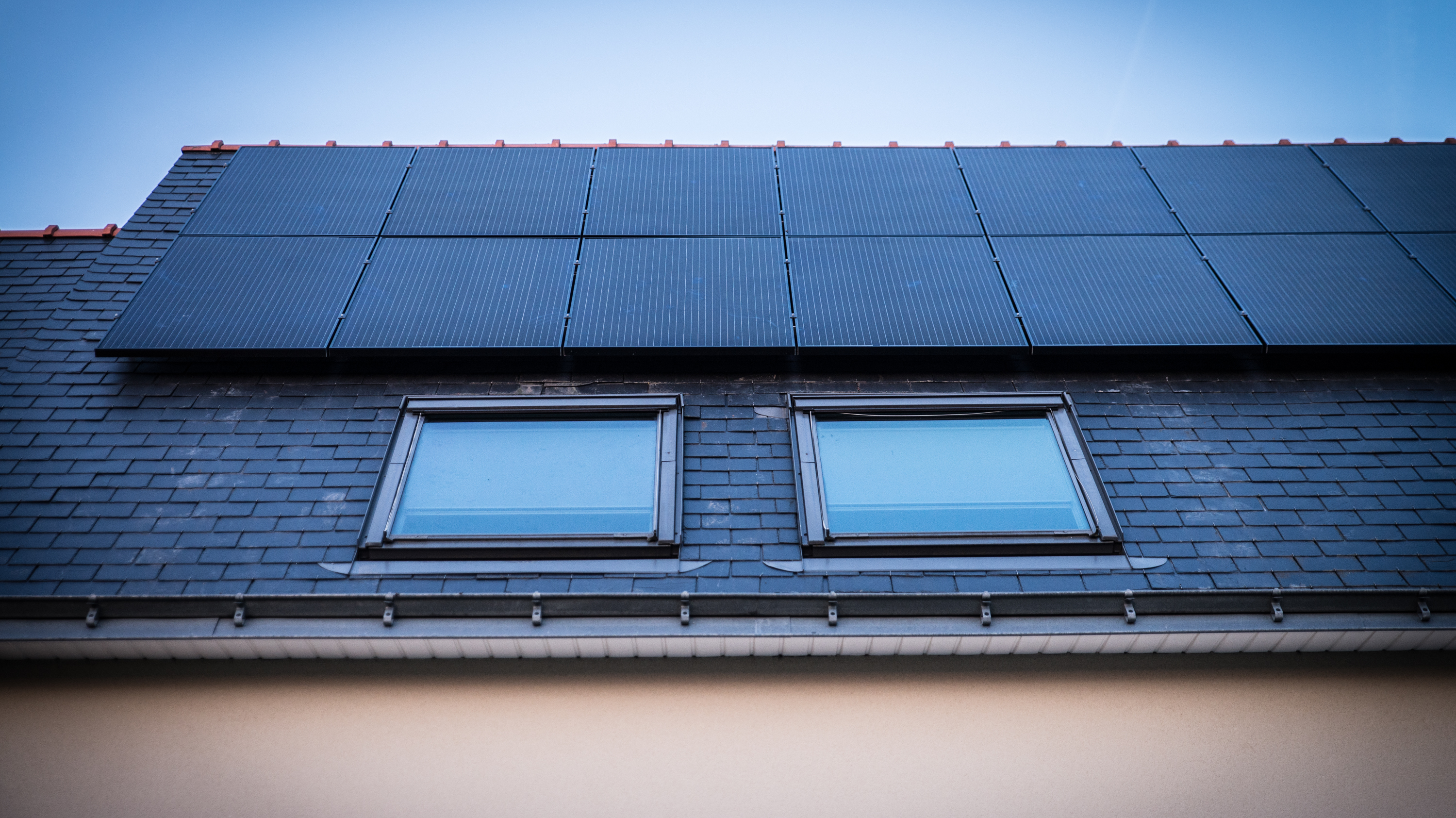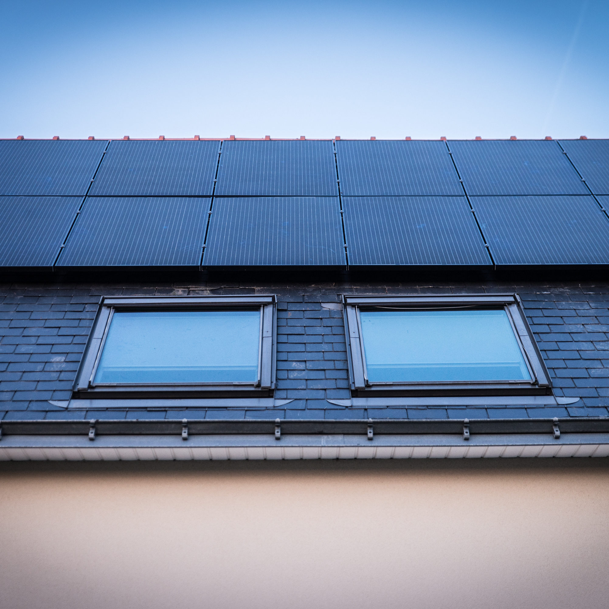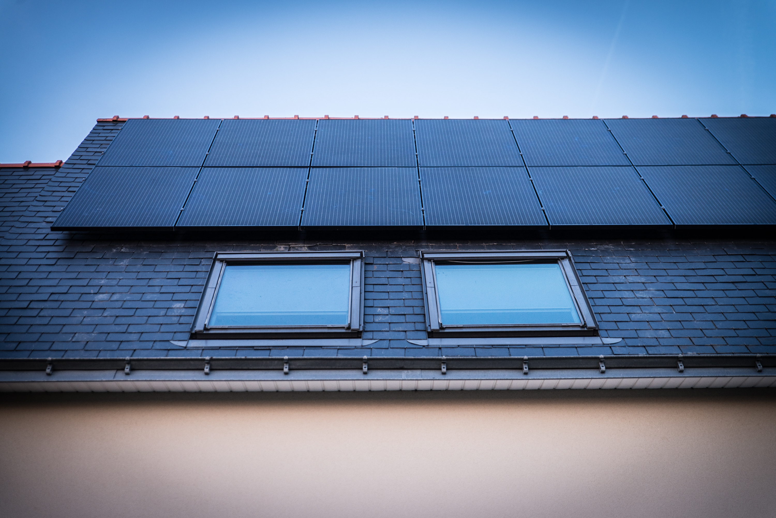 Panneaux photovoltaïques sur le toit d'une maison.